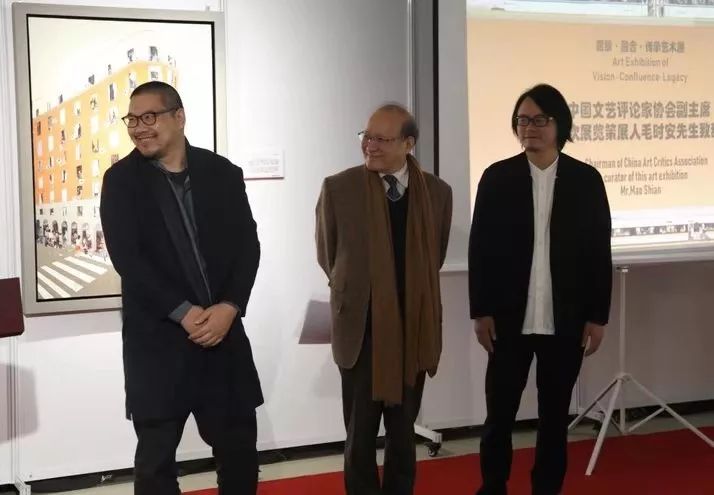 中国文艺评论家协会副主席、策展人毛时安向出席开幕活动的嘉宾介绍参展艺术家杜海军和邮政纪念封设计师郑邦谦,他评价道:杜海军长期探索以建筑为主题表达当代人文景观,用国际化的油画语言讲述故事,风格鲜明。